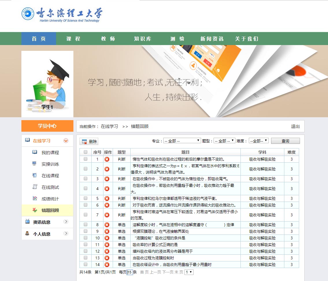 系統的主要功能可以理解為在線“學習與測評”。它的主要功能也集中在兩點,一是學習培訓;二是考試。在學習培訓部分,首先是老師編排課程,然后學生選擇相應課程學習。考試部分,則由老師錄入試題,隨機生成試卷,學生參加考試。通過記錄學員在線上參加的理論學習、考試、錯題回顧等情況,實現對學員學習情況的全程跟蹤管理和對學生培訓需求的全面掌握。