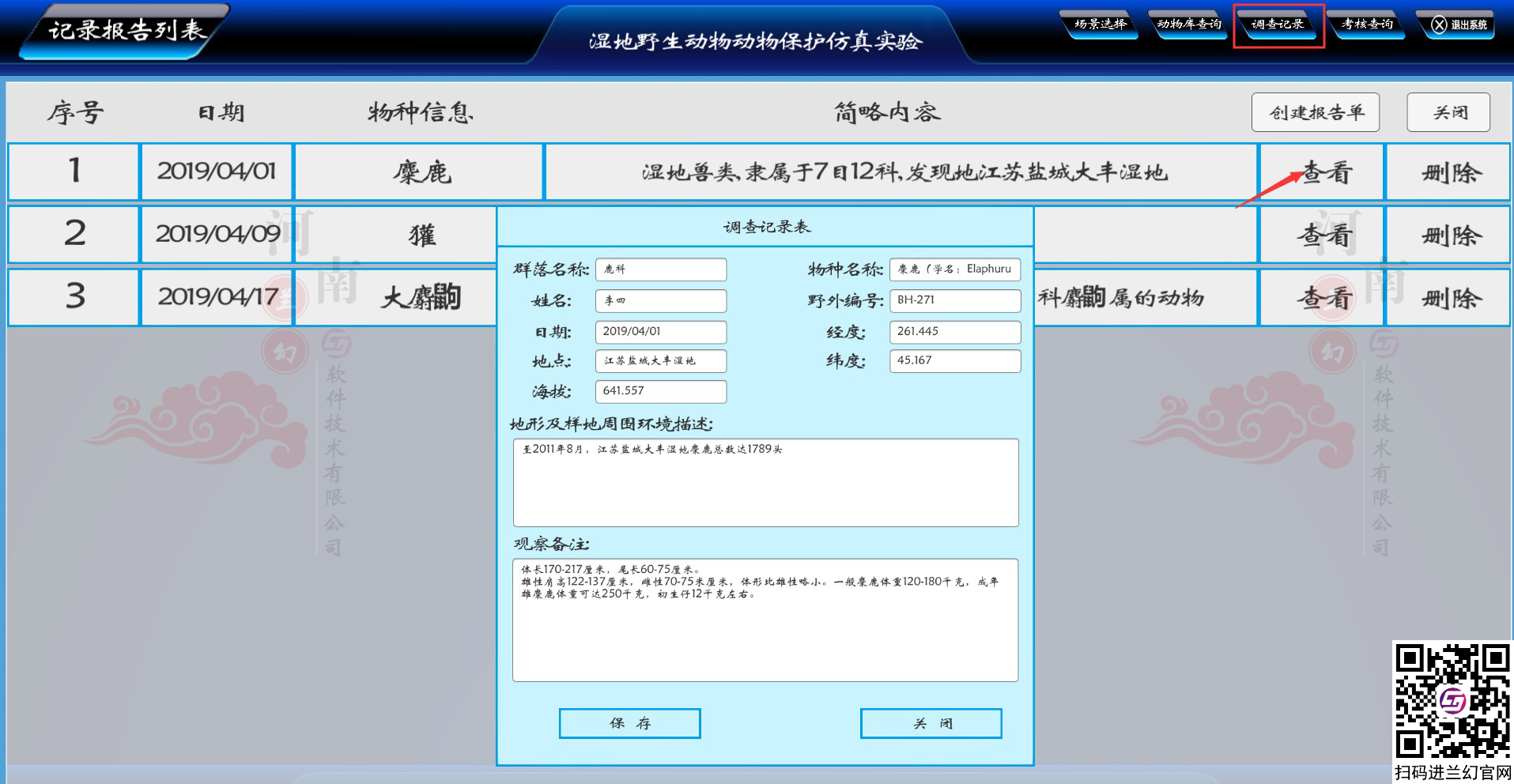 野生動物動物保護(hù)仿真實(shí)訓(xùn)軟件利用虛擬環(huán)境方法,系統(tǒng)性學(xué)習(xí)野外動植物調(diào)查樣線法、樣點(diǎn)法、樣方法調(diào)查動植物種類,棲息地環(huán)境,使學(xué)生學(xué)習(xí)更直接便捷,系統(tǒng)學(xué)習(xí)動植物類型、掌握植物、動物、分類和特征和自然環(huán)境保護(hù)保護(hù)打好基礎(chǔ)。